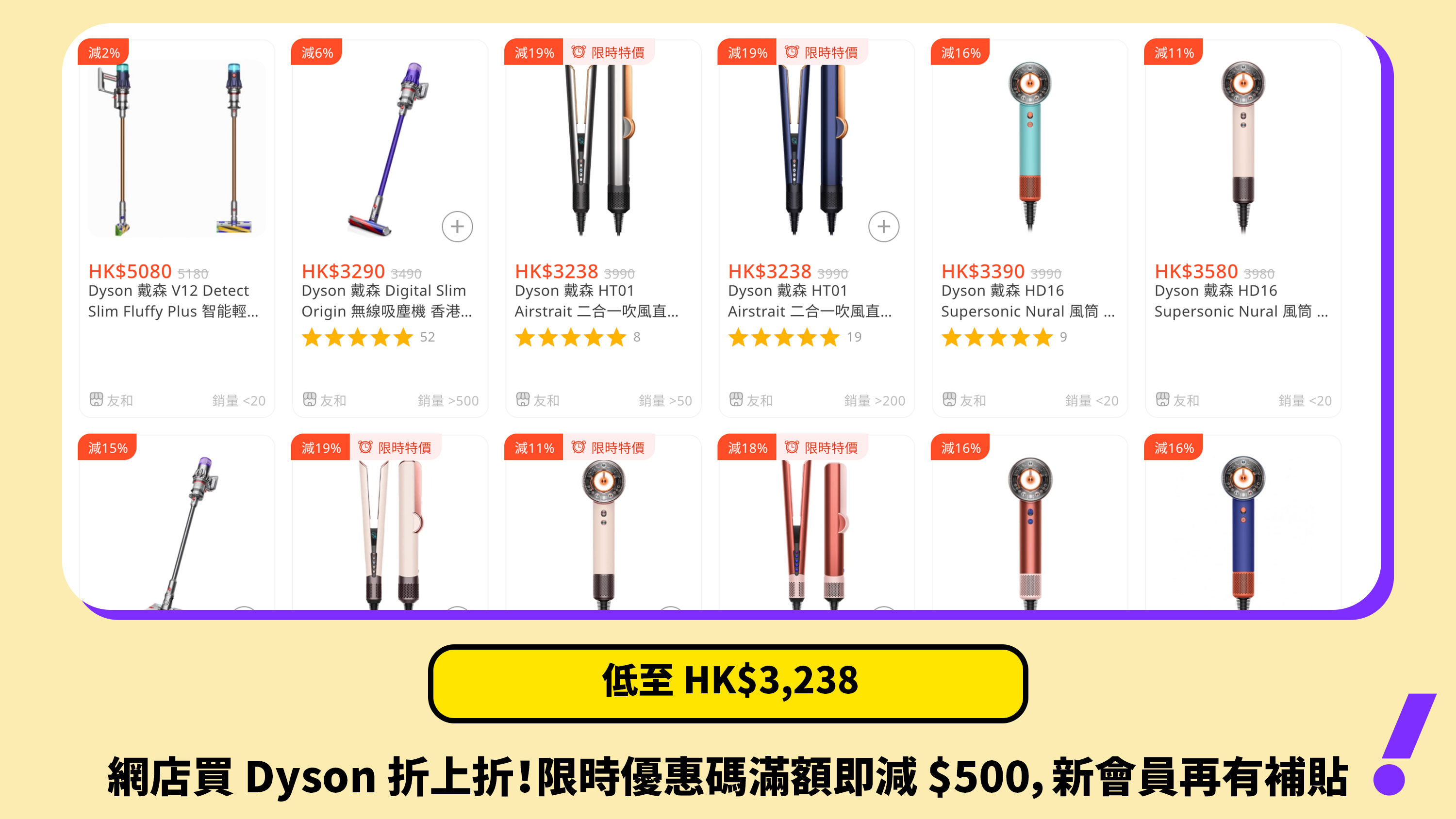 Dyson 官網現價 HK$3,290|登入會員購買滿$3,000獲額外$200折扣,滿$6,000獲額外$500折扣。