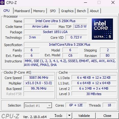 作為Core Ultra 5 265K增強版的Core Ultra 5 250K Plus則是在既有6P+8E的組合添加1組4核心的E Core,形成獨特的6P+12E的18核配置,此在把最高Boost時脈自原本5.2GHz略為提升至5.3GHz,同時也由於核心數量的增加,除了L2快取自26MB增加至30MB,Intel Smart Cache快取也從24MB增加至30MB,至於TDP與Max Turbo Power同樣維持在125W與159W的設定。