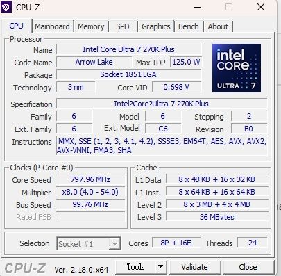 Intel於Intel Core Ultra 200S系列規劃兩款產品,包括Core Ultra 7 270K Plus與Core Ultra 5 250K Plus;Core Ultra 7 270K Plus是一款相當值得玩味的產品,一方面可以視為Core Ultra 7 265K添加4核心的昇級版本,但另一方面也可看成Core Ultra 7 285K拿掉Thermal Velocity Boost的平價版本,Core Ultra 7 270K Plus具有8P+16E的24核配置與最高5.5GHz的時脈,TDP為125W,Max Turbo Power為250W。