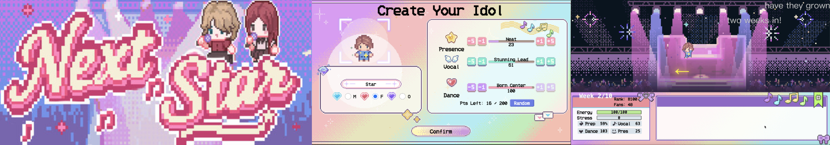 关键字:生活模拟、剧情丰富、选择导向;综艺选秀模拟养成游戏:自由探索地图,合理规划日程,通过小游戏提升属性,在对话中触发不同选择和关系变化,还原真实选秀体验!每个阶段考核,排名垫底就会被淘汰!结交好友抱团取暖,或是成为独来独往的孤狼,全凭你的选择。