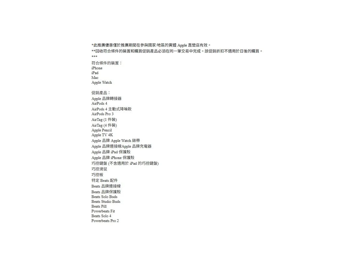 為響應世界地球日,蘋果也祭出針對消費者的回收誘因:即日起至5月16日,消費者只要將符合條件的舊蘋果產品送至當地特定蘋果零售店進行回收,即可享有購買AirPods或相關配件的9折優惠。