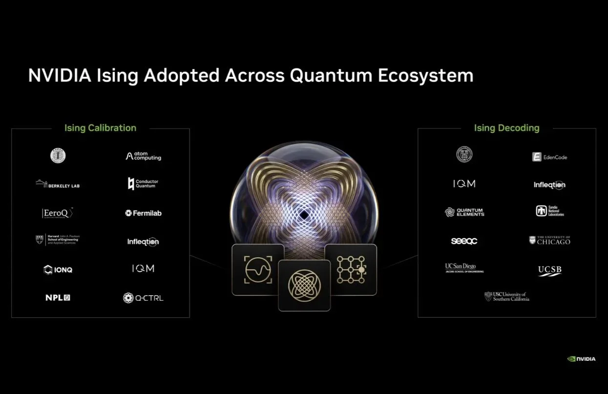 目前,NVIDIA Ising已經獲得量子運算生態系的廣泛採用,包含勞倫斯伯克利國家實驗室、哈佛大學、IonQ、IQM、Atom Computing等眾多頂尖研究機構與企業,都已經將Ising模型導入其校準與解碼的研發工作流程中。