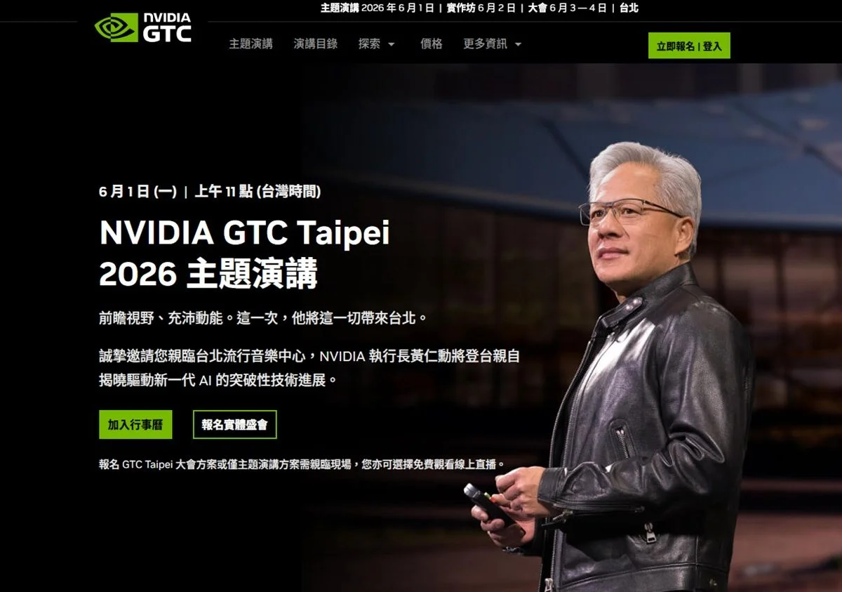 NVIDIA在官網公布於Computex 2026期間同步舉辦NVIDIA GTC Taipei大會,其中主題演講選在2026年6月1日上午11點於台北流行音樂中心,即日起開放民眾報名參與,主題演講座位有限,將依據報名先後順序安排,而GTC Taipei主題演講也將同步在NVIDIA官方社群平台直播。